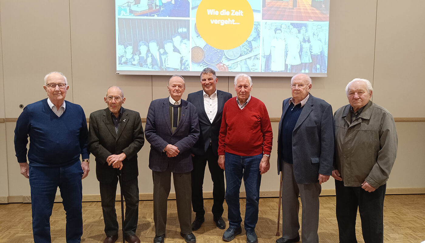 Bild v.l.n.r.: Von links: Hellmuth Siemer, Ernst Georg Lühring, Otto Deepe, Vorstandsmitglied Frank Ostertag, Hans Johann Döding, Conrad Kramer sen., Arthur Sanders